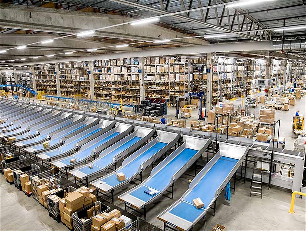 När plockarna är färdiga med plock och pack ska de färdiga paketen transporteras till utlastningstytan. De mindre paketen transporteras via transportbanor och sorteras automatiskt på sorteringsanläggningen. Större gods hamnar på pallytor.